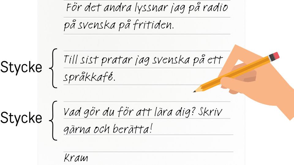 Styckeindelning Genom att lämna lite luft mellan de olika delarna i en text och använda stycken kan vi skapa en tydligare struktur. By leaving some air between the different parts of a text and using paragraphs, we can create a clearer structure.EngShow less
